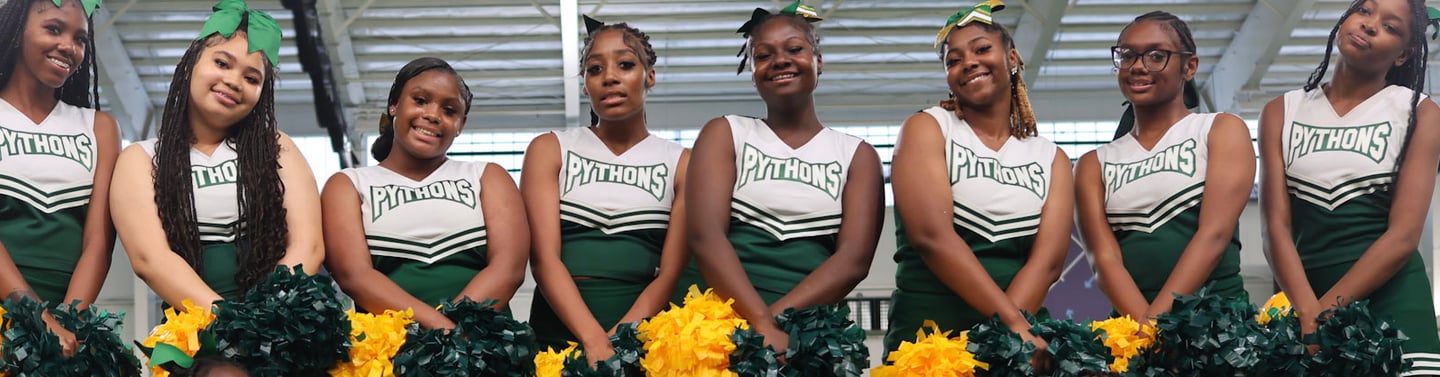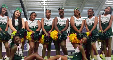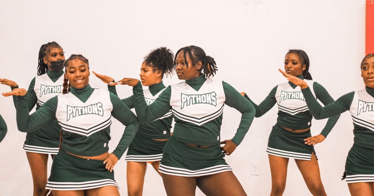 Competitive cheer, stunts, tumbling and school spirit support.